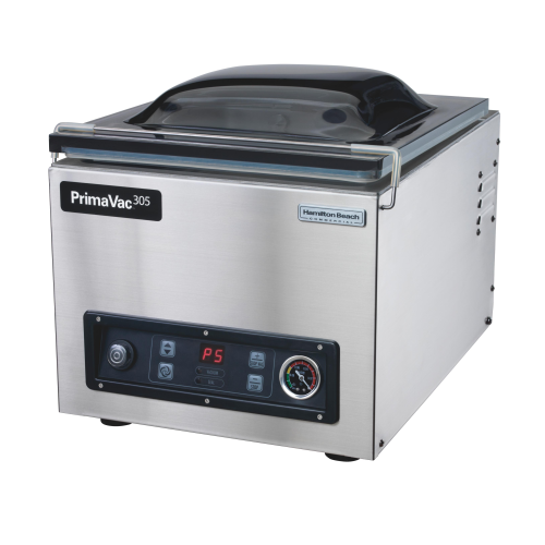 PrimaVac™ Vacuum Packaging Machine, electric, countertop, 379 x 491 x 373mm single chamber, 305mm removable seal bar, 10m³/h JetAire™ pump, vacuum gauge, (10) custom programs, adjustable soft air, removable filler plate, includes maintenance kit, clear lid, stainless steel housing, 220-240v/50-60/1-ph, 5.0 amps, 350 watts, NSF, CE, RoHS compliant