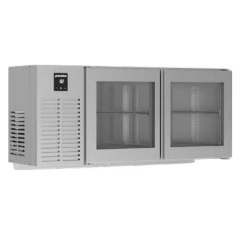 Refrigerated Wall Cabinet, 1/4° C, 300 litre, (2) glass doors, (4) 1/1 GN shelves, wall fixing kit, self-closing doors, anti-tilt slides, coated evaporator coils, side mount self-contained high ambient (43° C) condensing unit, stainless steel interior & exterior, R290 refrigerant, MEPS C